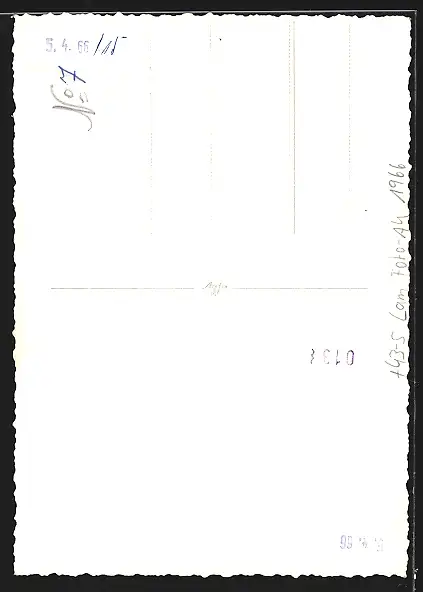 Personenbezogene Daten auf der Rückseite der Karte wurden durch blauen Textmarker unkenntlich gemacht. Die blauen Stellen sind auf die Vorderseite durchgeweicht und wirken sich negativ auf das Postkartenfoto aus