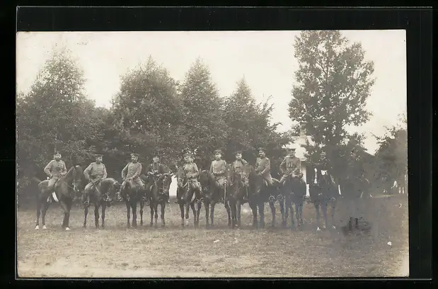 Foto-AK Lechfeld, Soldaten mit Ferngläsern auf Pferden