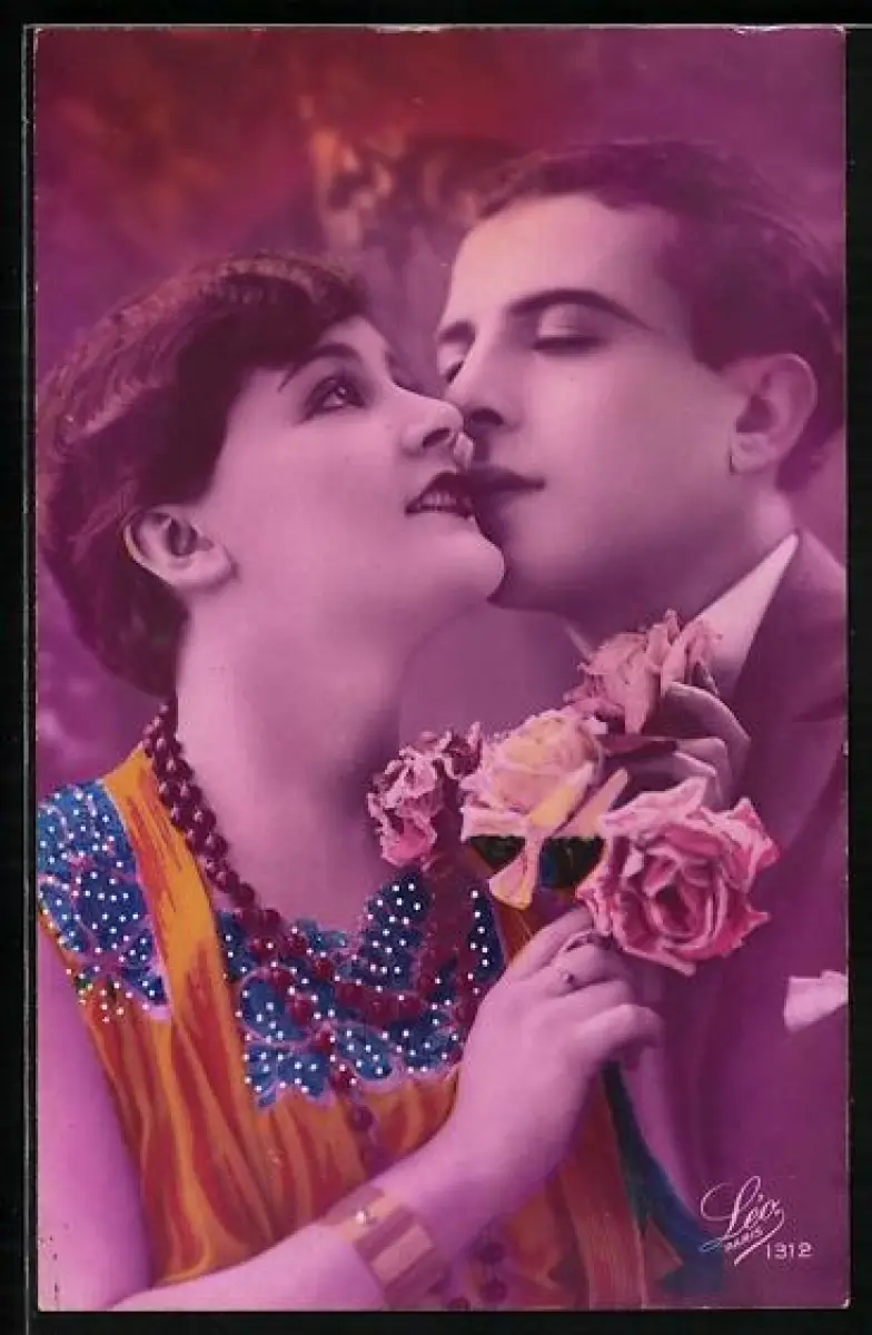 Foto-AK Leo, Paris Nr. 1312: Junger Mann liebkost junge Frau