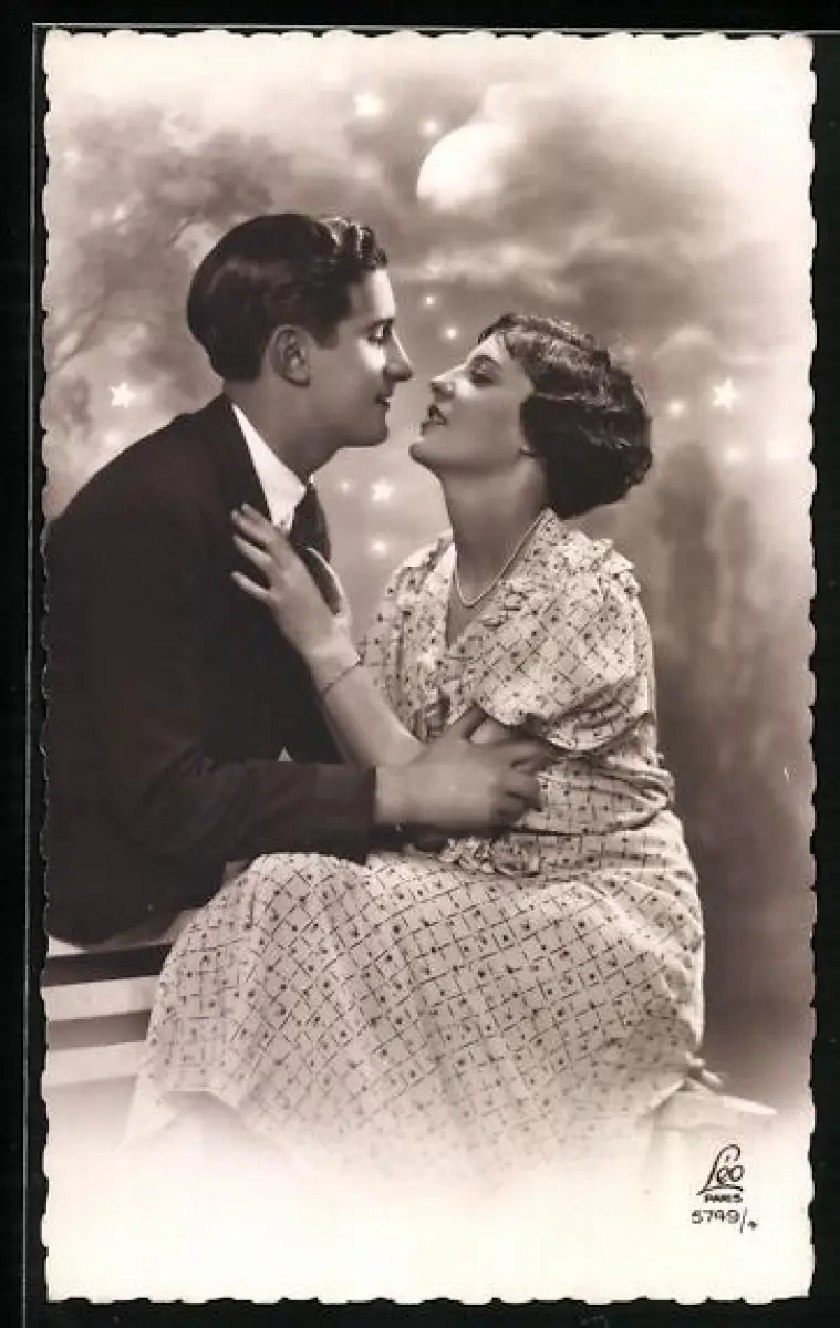 Foto-AK Leo, Paris Nr. 5749/4: Junges Paar schaut sich mit verliebtem Blick an