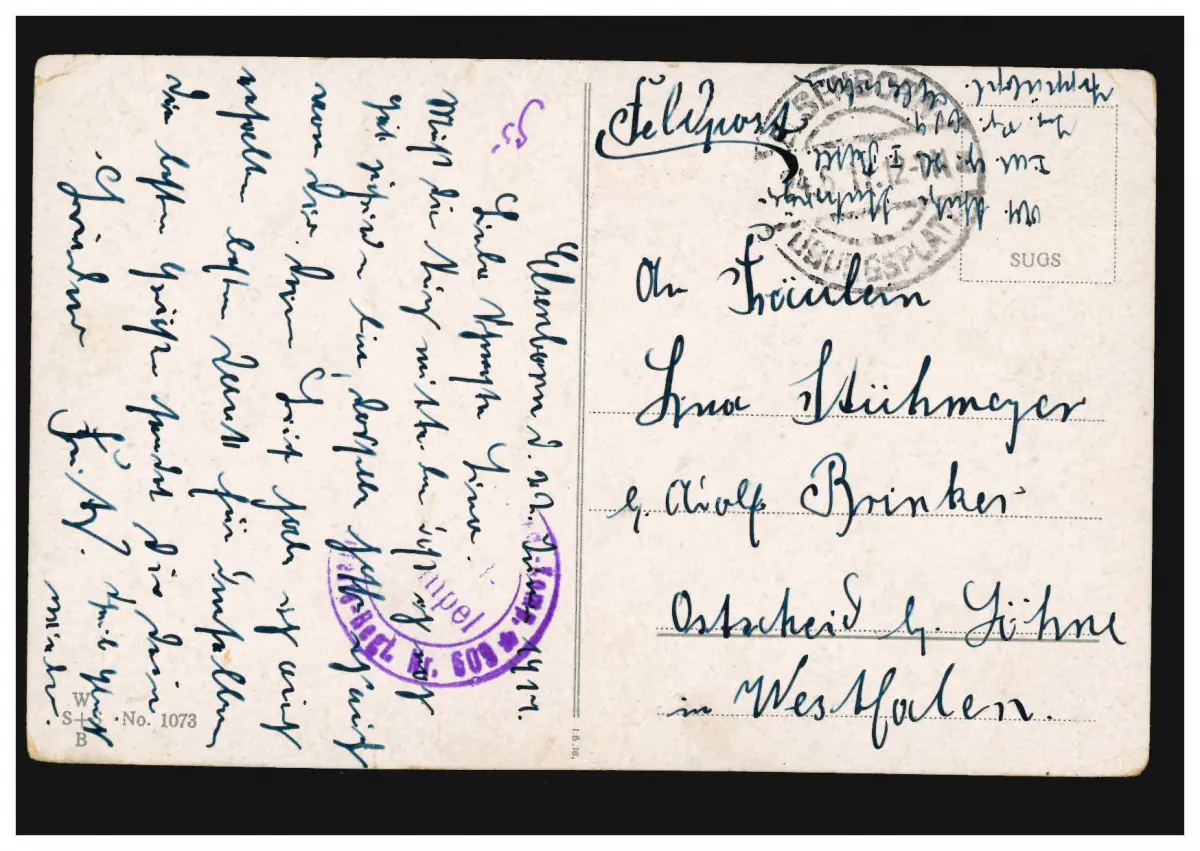 Foto-AK Liebespaar, Feldpost Inf.-Regt. 609 in ELSENBORN-ÜBUNGSLATZ 24.6.1917