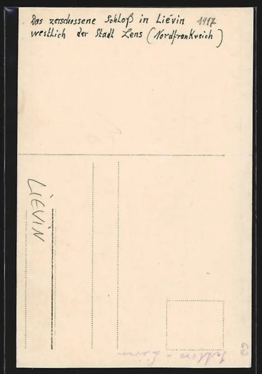 Foto-AK Liévin, Château détruit à l`ouest de Lens en 1917