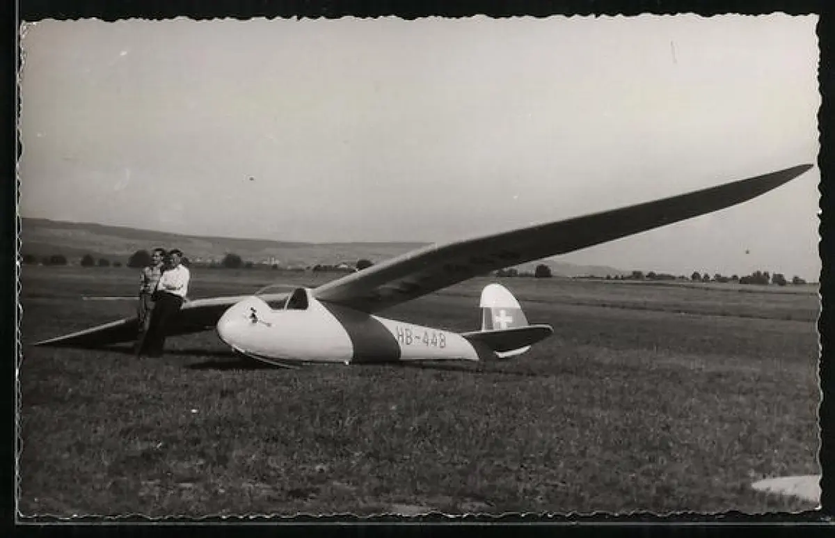 Foto-AK Lupfig /AG, Birrfeld, Segelflugzeug HB-448 auf dem Flugplatz