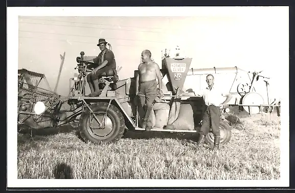 Foto-AK Mähdrescher Hofherr bei der Feldarbeit