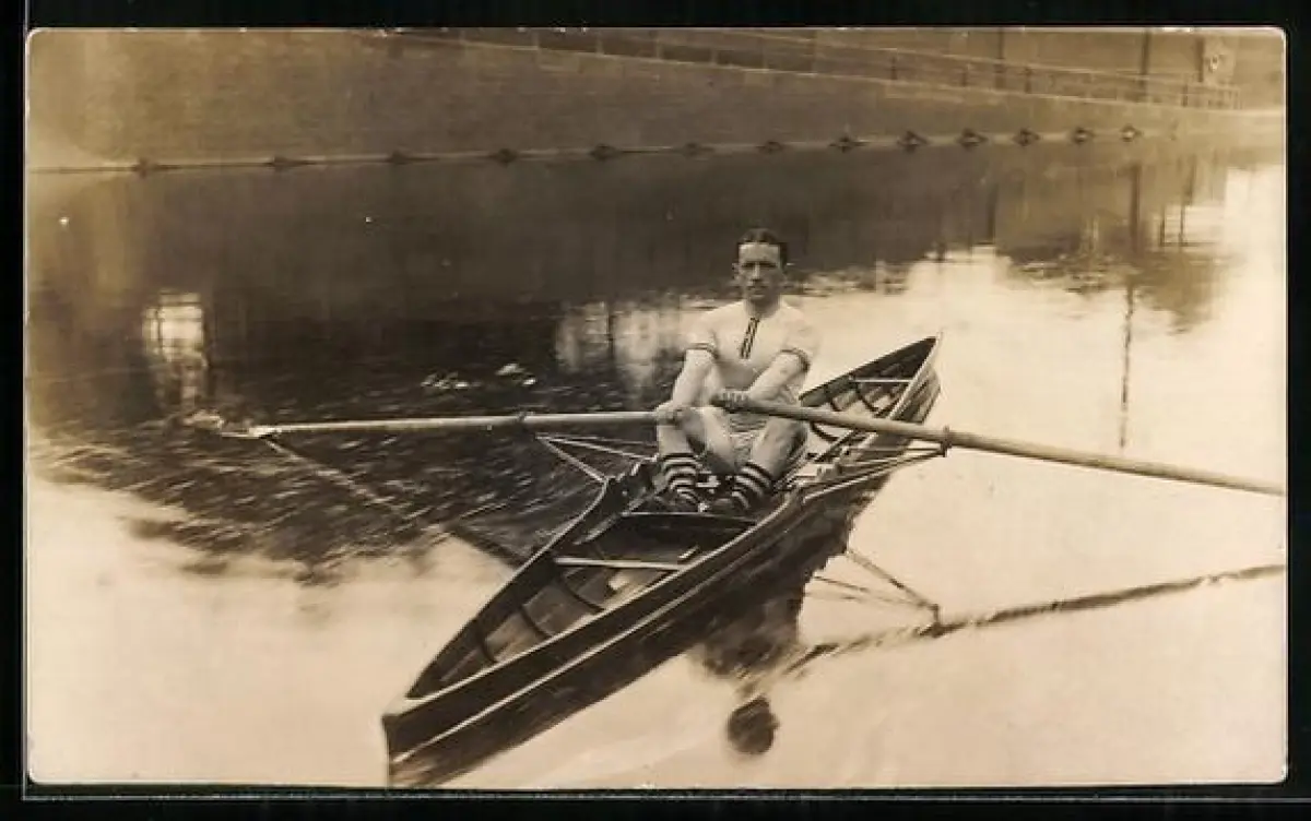 Foto-AK Mann in einem Ruderboot