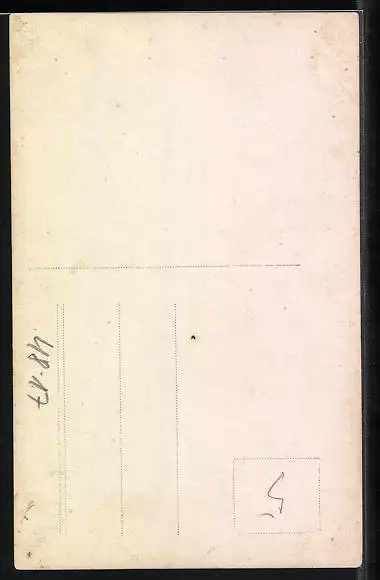 Personenbezogene Daten auf der Rückseite der Karte wurden durch blauen Textmarker unkenntlich gemacht. Die blauen Stellen sind auf die Vorderseite durchgeweicht und wirken sich negativ auf das Postkartenfoto aus