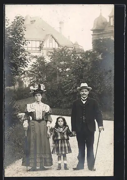 Foto-AK Mannheim, Stimmungsbild 1908, Paar mit kleiner Tochter