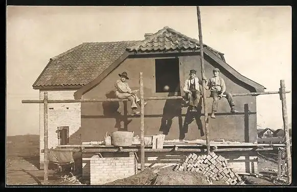 Foto-AK Maurer auf einem Gerüst, Handwerk