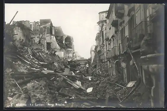 Foto-AK Messina, Via Cardines nach dem Erdbeben