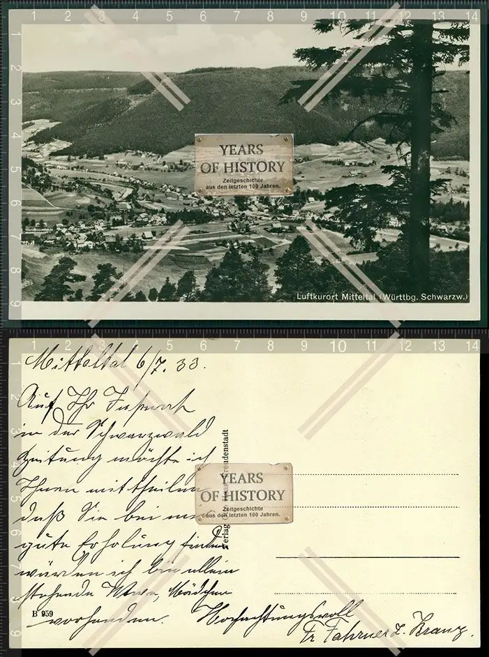 Foto AK Mitteltal Baiersbronn im Nordschwarzwald Panorama 1933 M2022-11-27-182Foto AK Mitteltal Baiersbronn im Nordschwarzwald Panorama 1933