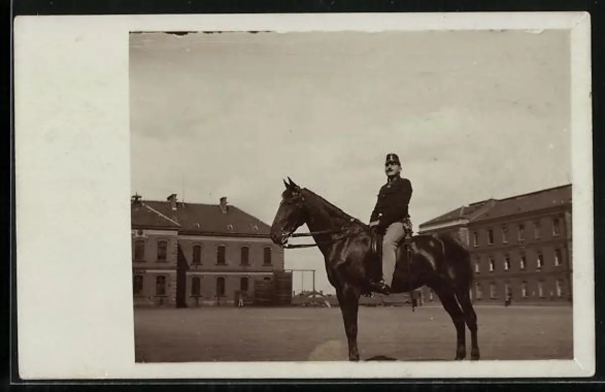 Foto-AK Mödling, Lehrer Langer in Uniform zu Pferd