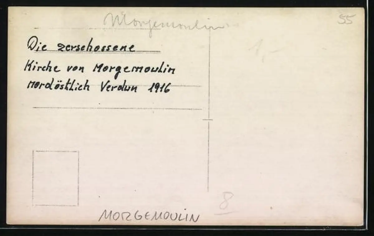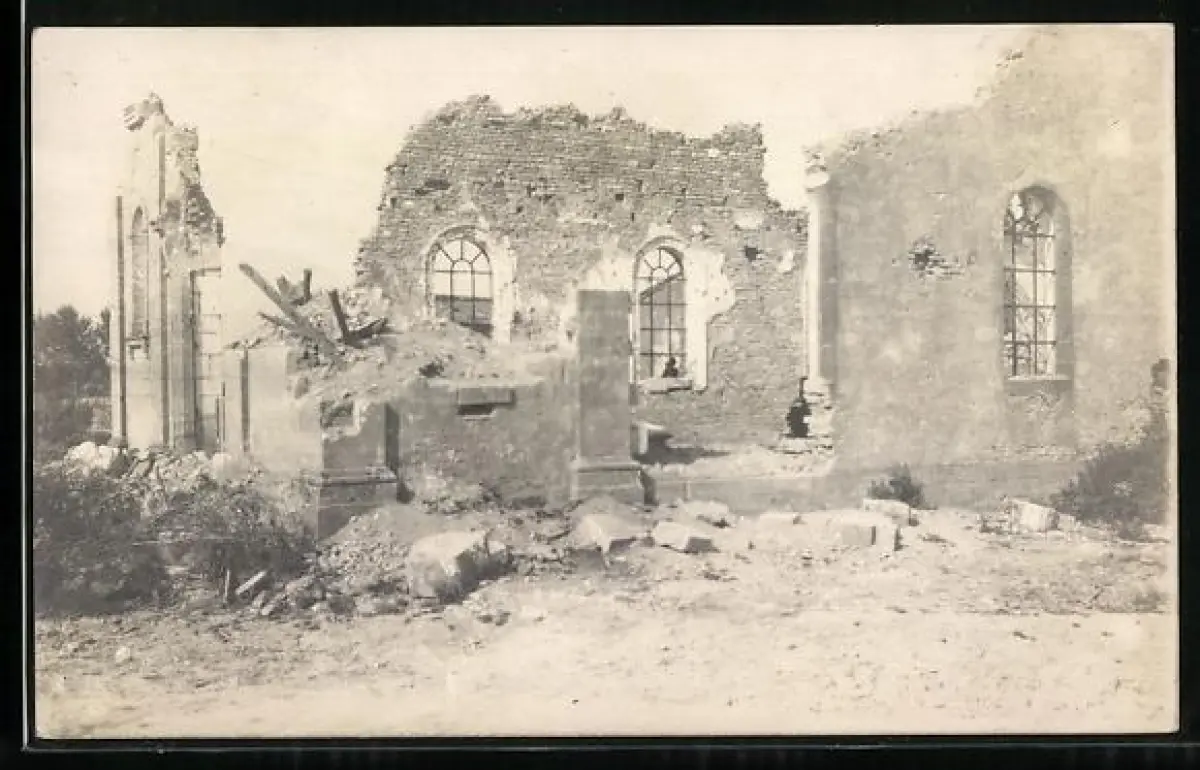 Foto-AK Morgemoulin, Église en ruines après les combats