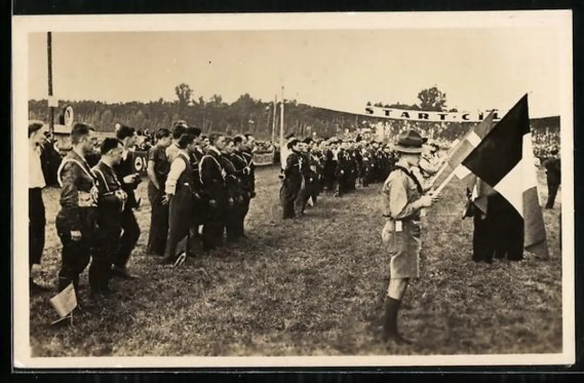 Foto-AK Motorrad-Rennen, Blick zur Startlinie
