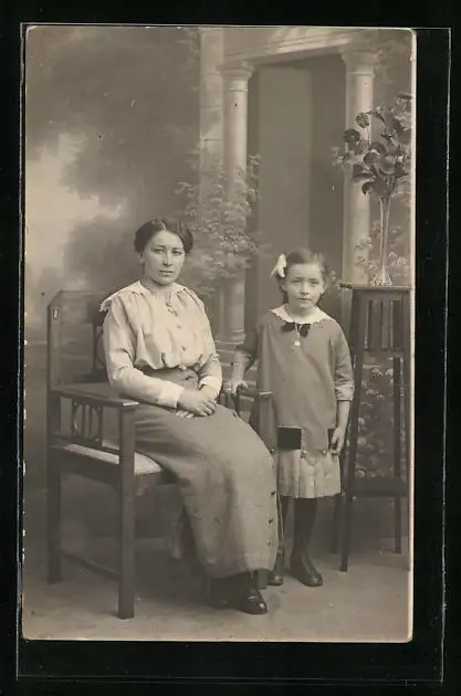 Foto-AK Mutter mit Tochter in einer Studiokulisse
