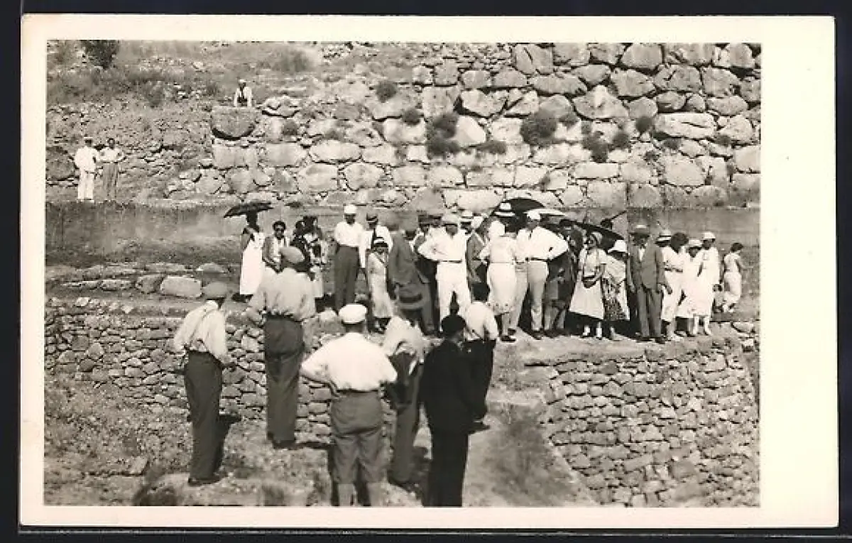 Foto-AK Mykene, Gruppe von Besuchern 1931