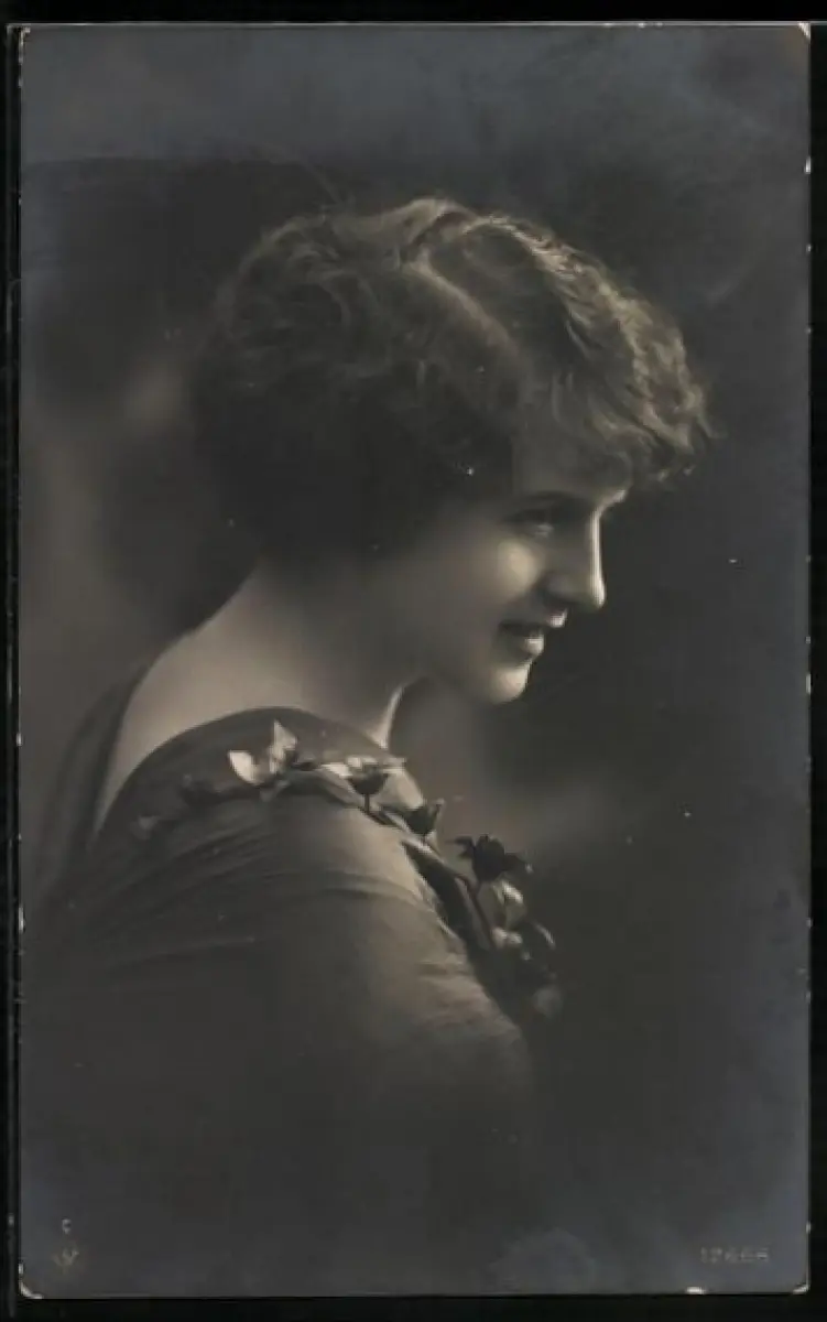 Foto-AK NPG Nr. 12668: Lächelnde junge Dame mit Blumenschmuck