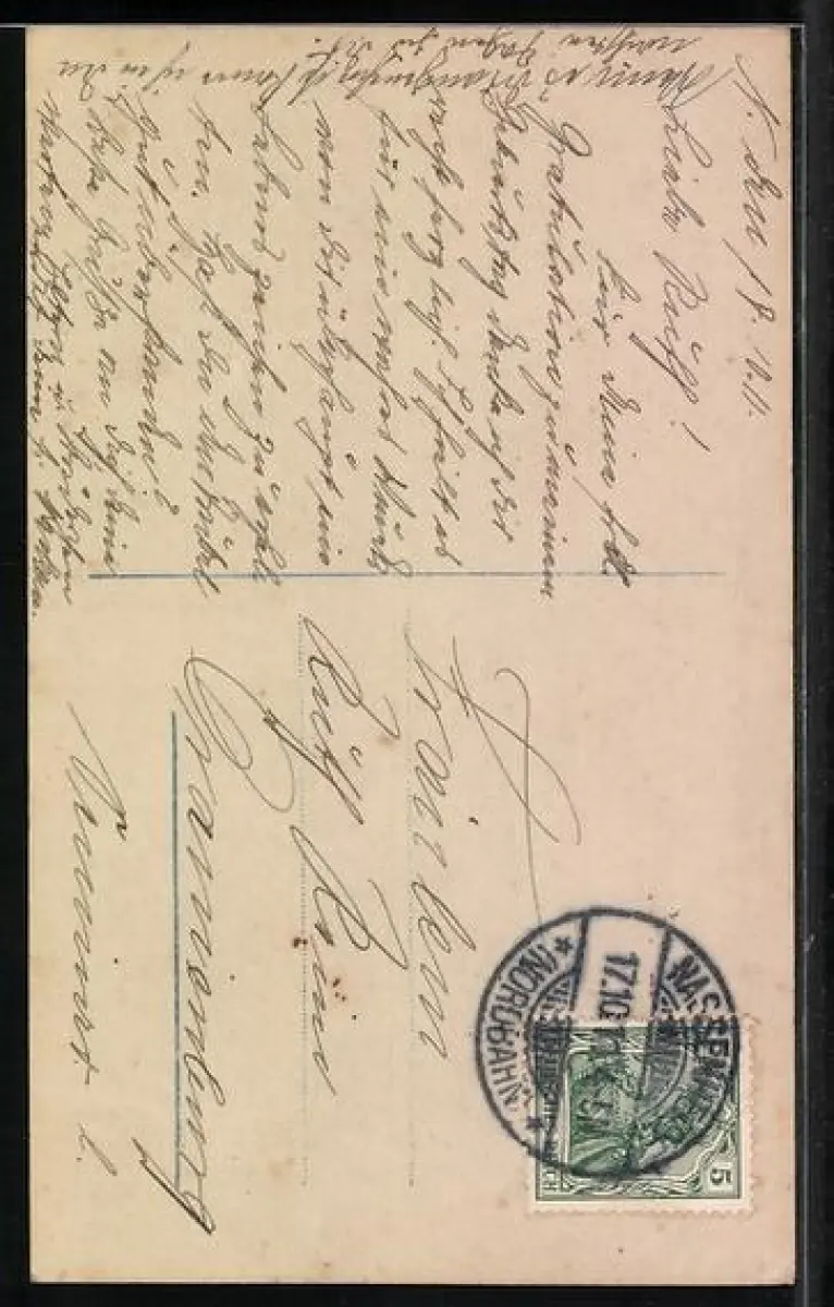 gelaufen 1911, Eckknicke li. unten u. re. oben, guter Zustand