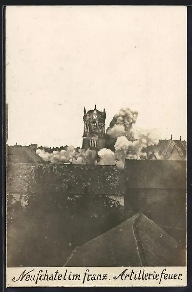 Foto-AK Neufchâtel, Sous le feu de l`artillerie francaise