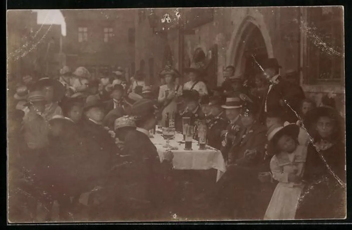 alte Ansichtskarte, ungelaufen, starker, rechts oben, mehrere Stecknadellöcher oben mittig
