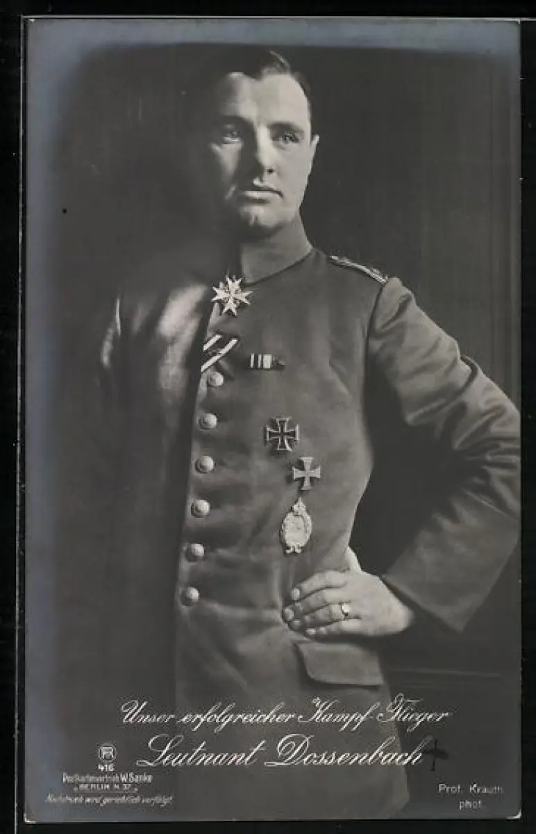 Foto-AK Nr. 416: Erfolgreicher Kampfflieger Leutnant Dossenbach in Uniform mit Orden