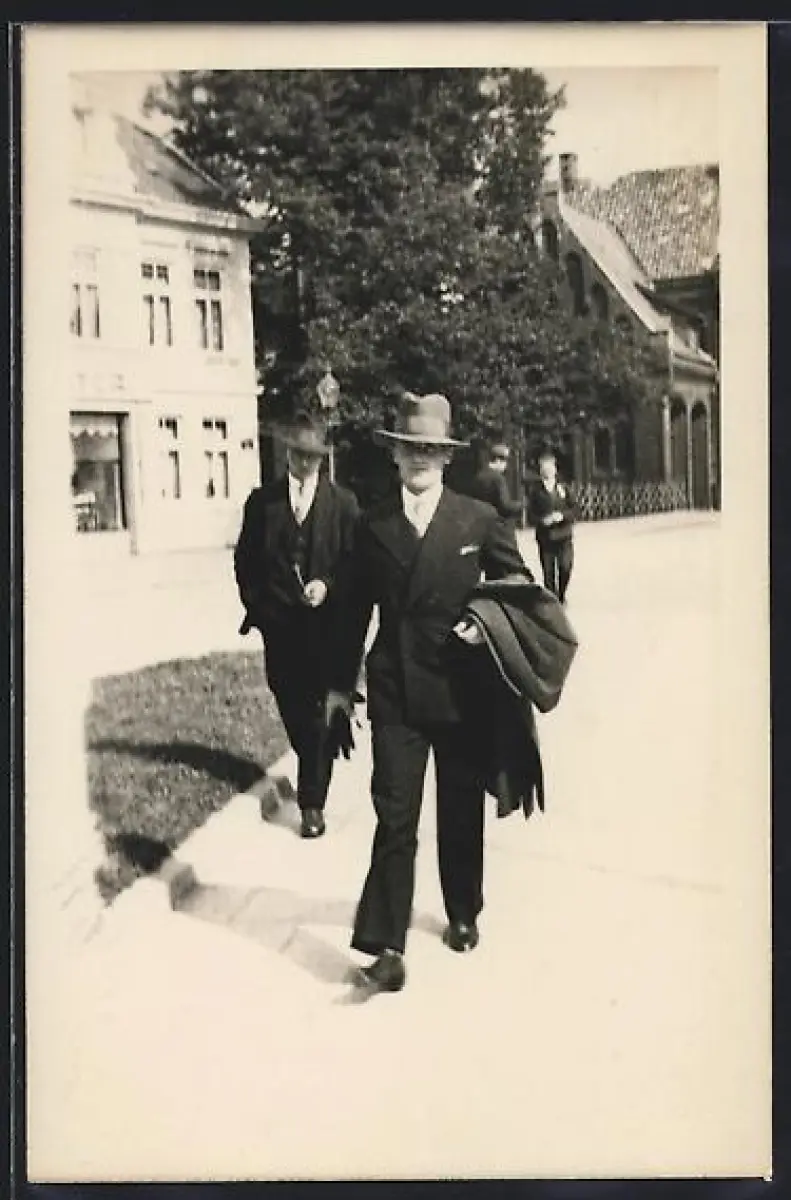 Foto-AK Oldenburg / Gr., Spaziergänger in der Ortsmitte