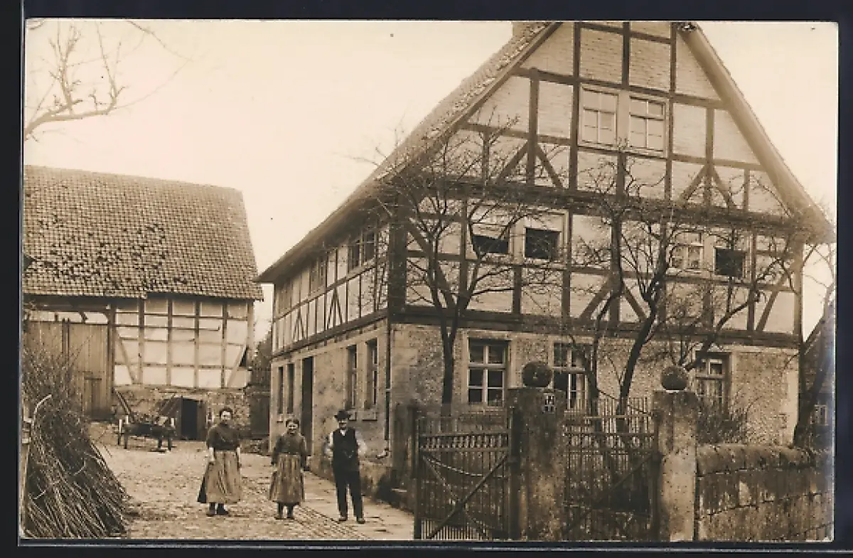 Foto-AK Orferode, Hof mit Bauer und Bauersfrauen