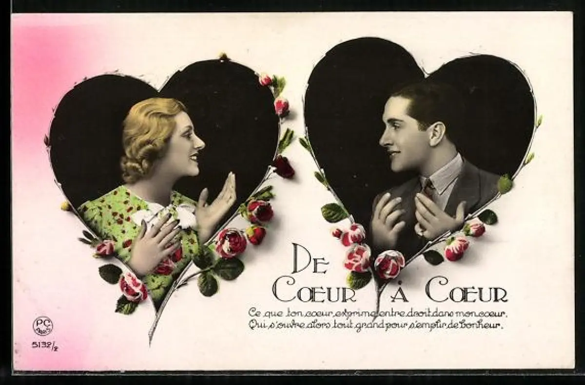 Foto-AK P. C. Paris: Junge Dame und Herr in zwei Herzen