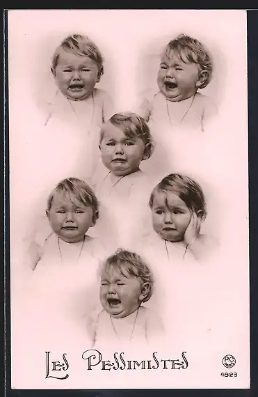 Foto-AK P. C. Paris: Kleinkind mit verschiedenen traurigen Gesichtsausdrücken