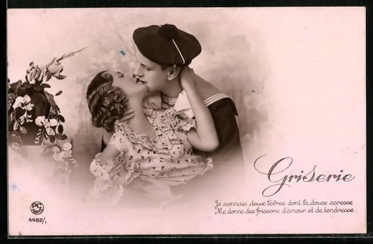 Foto-AK P. C. Paris: Matrose und Frau küssen sich
