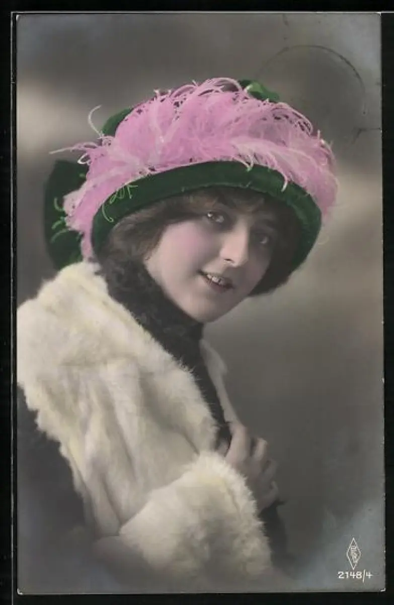Foto-AK PFB Nr. 2148/4: Junge Frau mit Pelzstola und extravagantem Hut