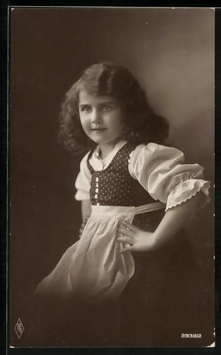 Foto-AK PFB Nr. 2939/2: Kleines Mädchen im Dirndl verschränkt die Arme in den Hüften