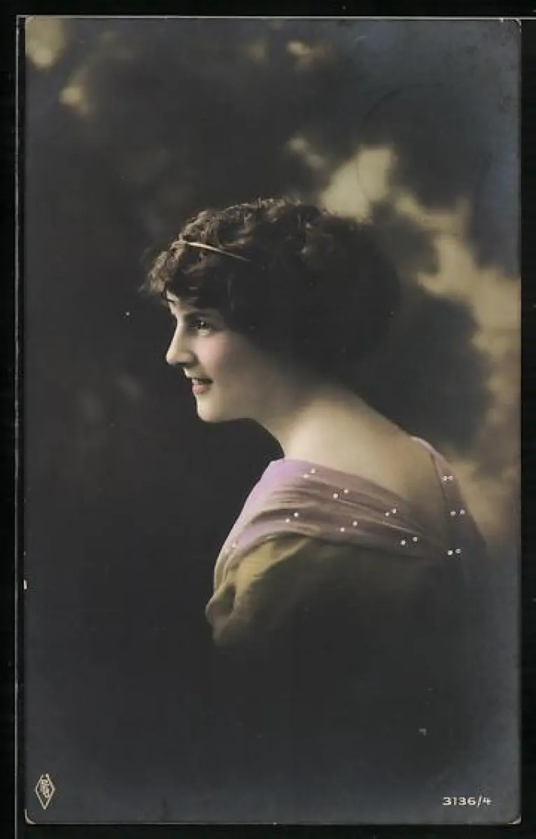 Foto-AK PFB Nr. 3136/4: Lächelnde junge Frau im Seitenporträt