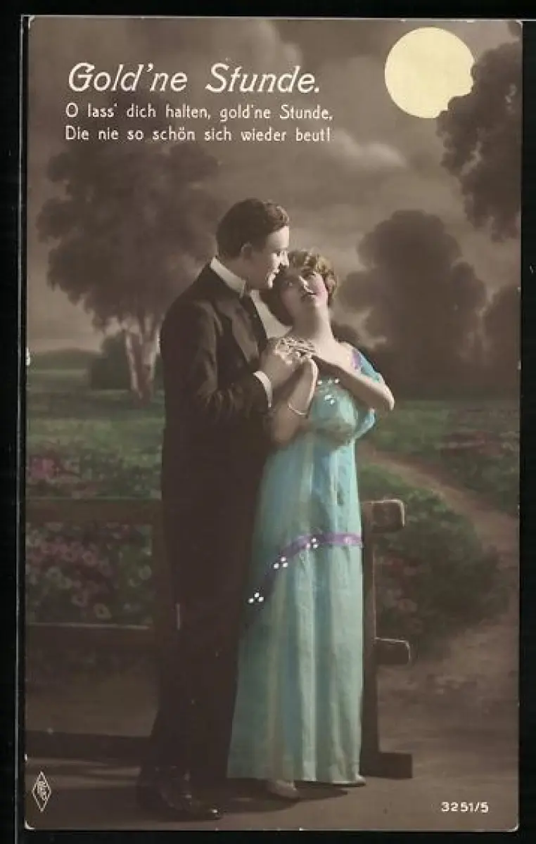 Foto-AK PFB Nr. 3251/5: Verliebtes Paar im Mondschein