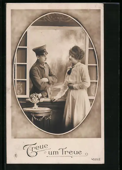 Foto-AK PFB: Treue um Treue, Soldat in Uniform und Frau