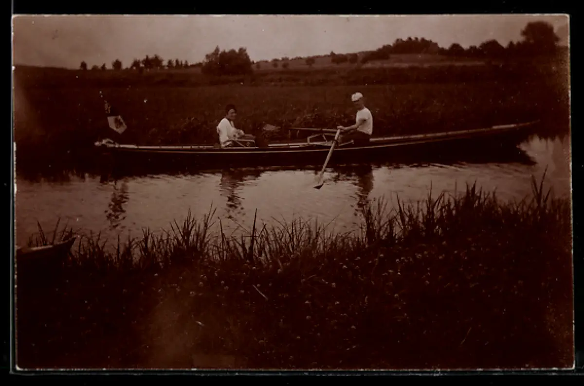 Foto-AK Paar in einem Ruderboot
