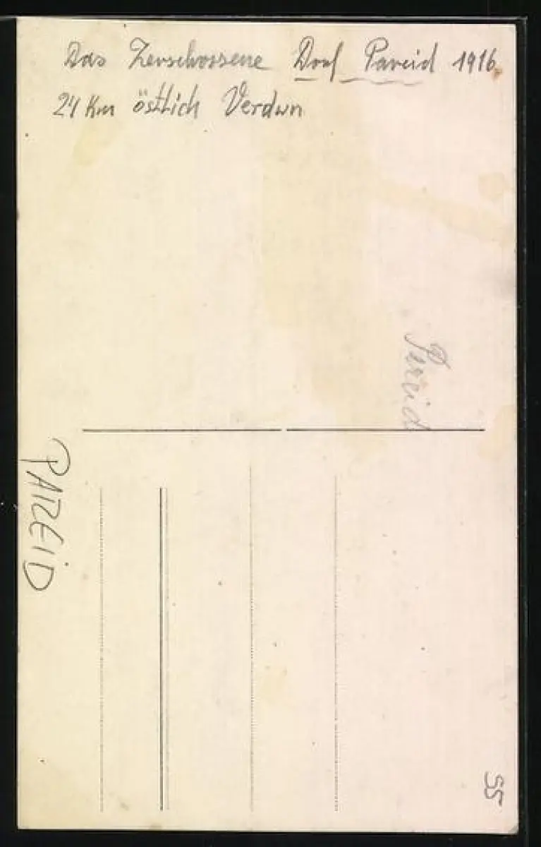 Foto-AK Pareid, Maison en ruines près de la voie ferrée après les destructions de 1916