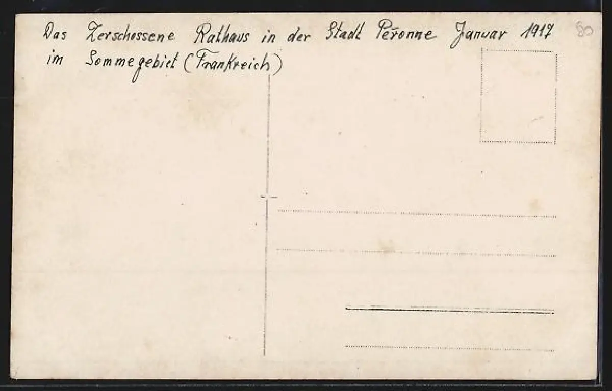 Foto-AK Péronne, Das zerschossene Rathaus 1917