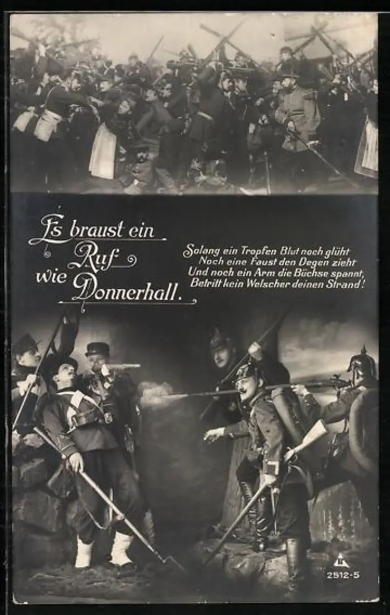 Foto-AK Photochemie Berlin Nr. 2515-5: Es braust ein Ruf wie Donnerhall, Soldaten im Gefecht