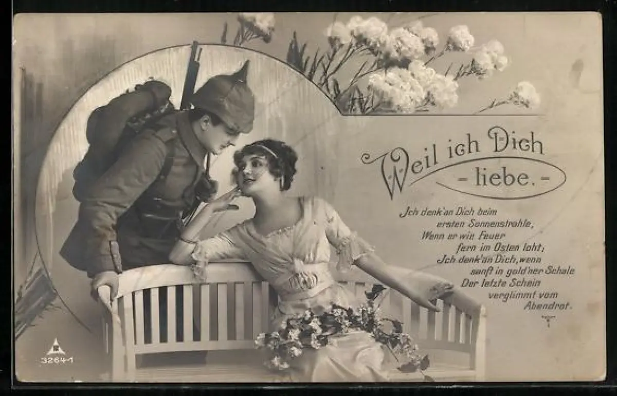 Foto-AK Photochemie Berlin Nr. 3264-1: Soldat in Uniform neben einer Frau auf einer Bank