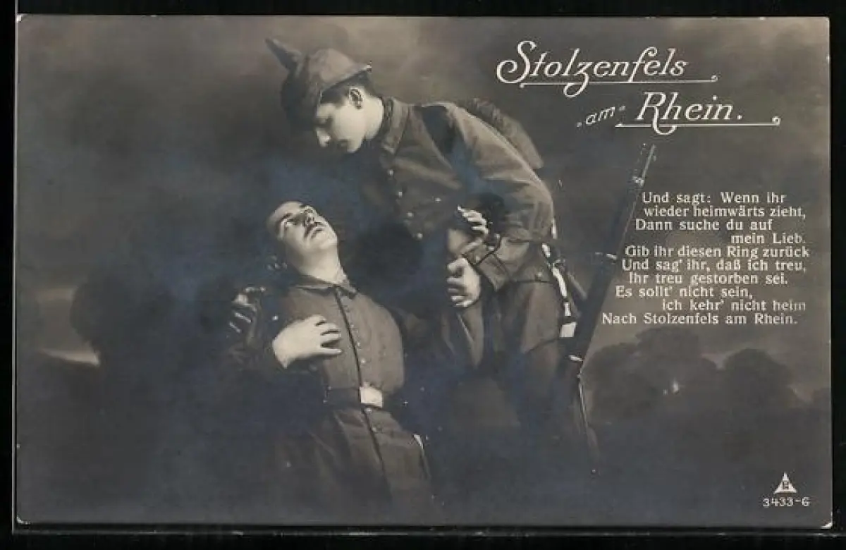 Foto-AK Photochemie Berlin Nr. 3433-6: Sterbender Soldat gibt seinem Kameraden seinen Ring