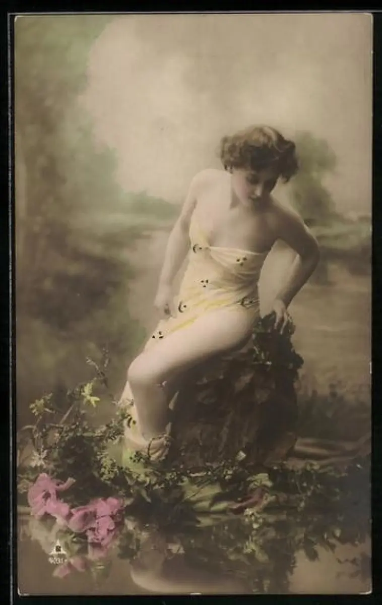 Foto-AK Photochemie Berlin Nr. 4031-4: Frau badet am Waldrand