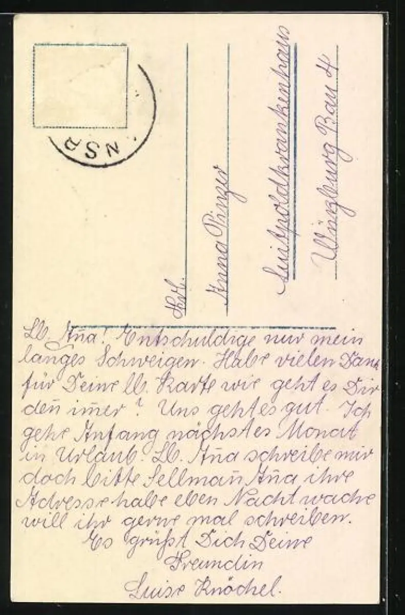 alte Ansichtskarte, gelaufen, Briefmarke entfernt, Eckknick re. oben, guter Zustand