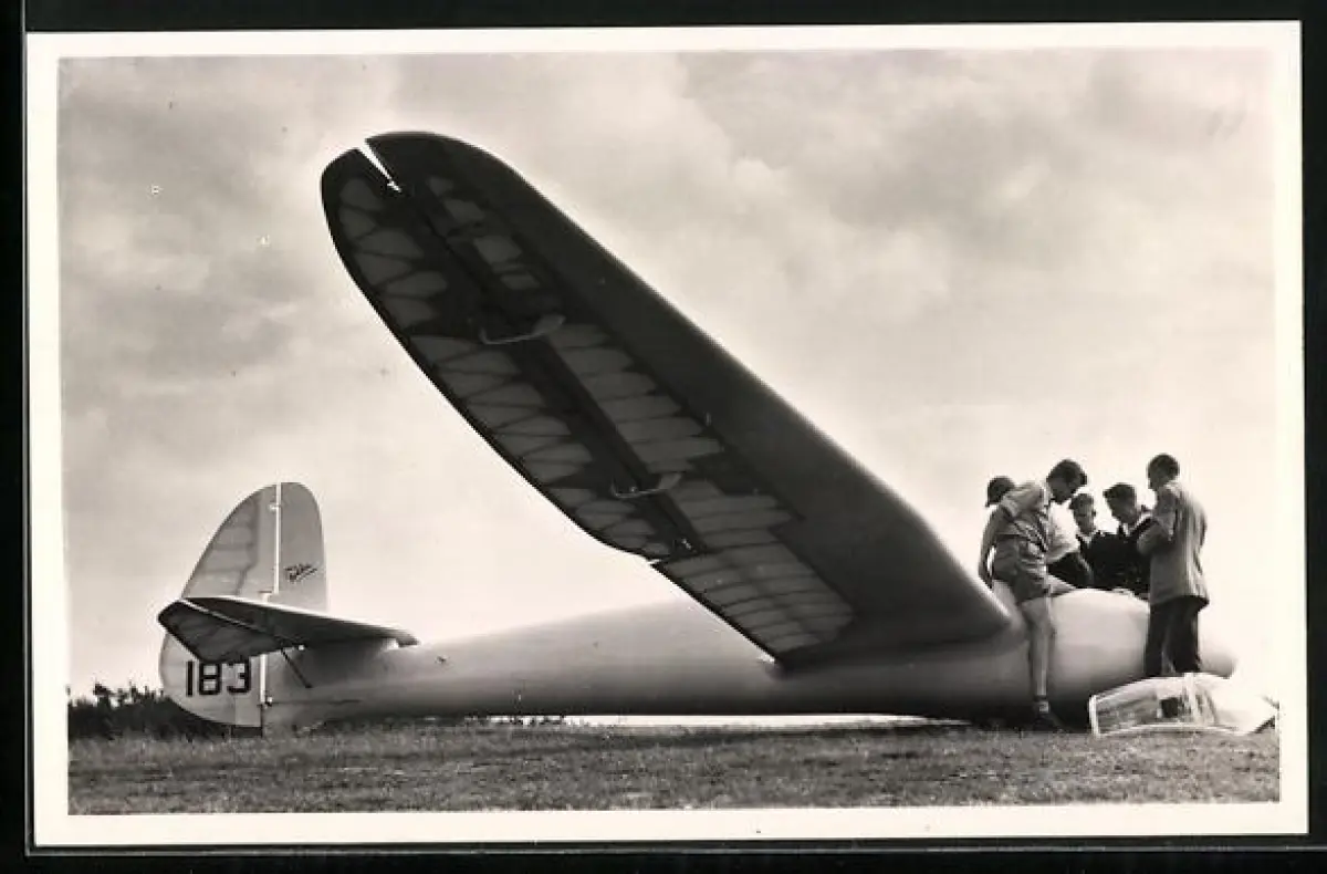 Foto-AK Pilot steigt in das Segelflugzeug ein, Kennung 183