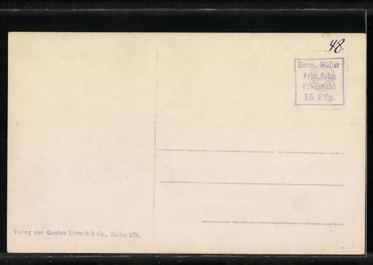 Personenbezogene Daten auf der Rückseite der Karte wurden durch blauen Textmarker unkenntlich gemacht. Die blauen Stellen sind auf die Vorderseite durchgeweicht und wirken sich negativ auf das Postkartenfoto aus