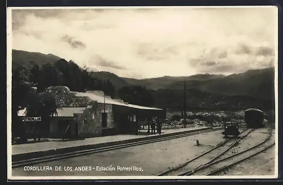 Foto-AK Potrerillos, Estacion Potrerillos, Cordillera de Los Andes, Bahnhof