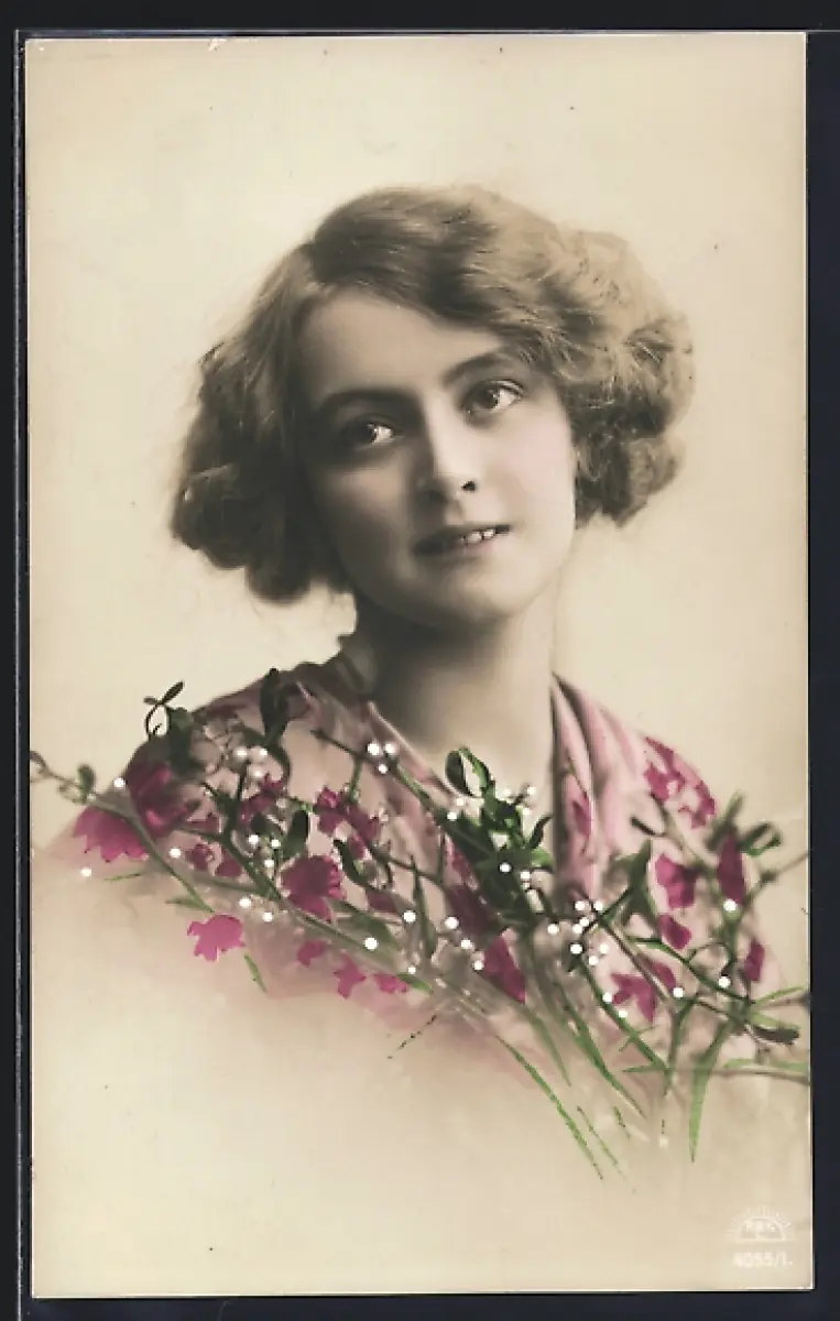 Foto-AK R & K / L Nr. 4055/1: Porträt einer Dame mit Mistelzweigen