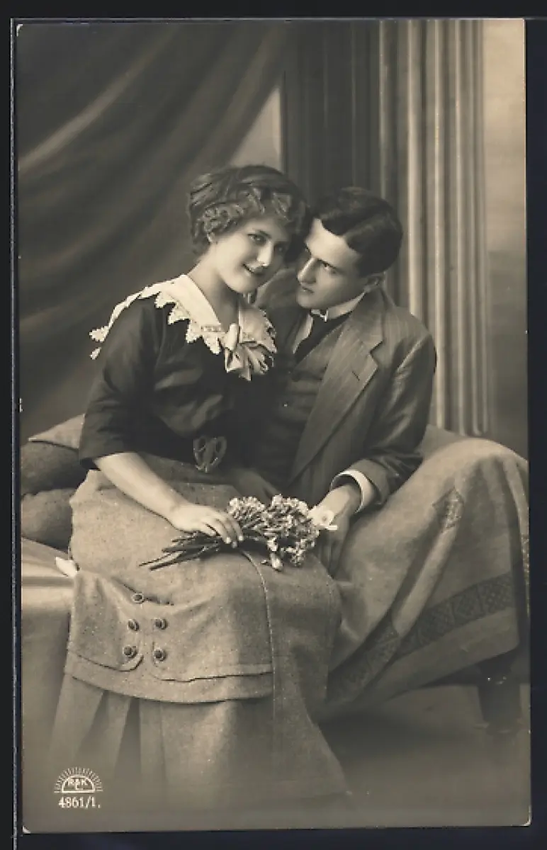 Foto-AK R & K / L Nr. 4861/1: Paar sitzt zusammen auf einer Bank
