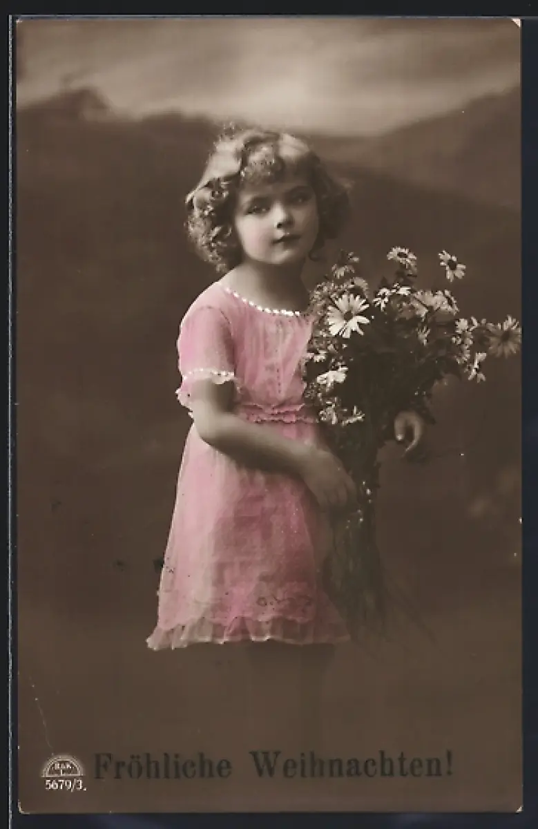 Foto-AK R & K / L Nr. 5679/3: Mädchen in rosanem Kleid mit Blumenstrauss