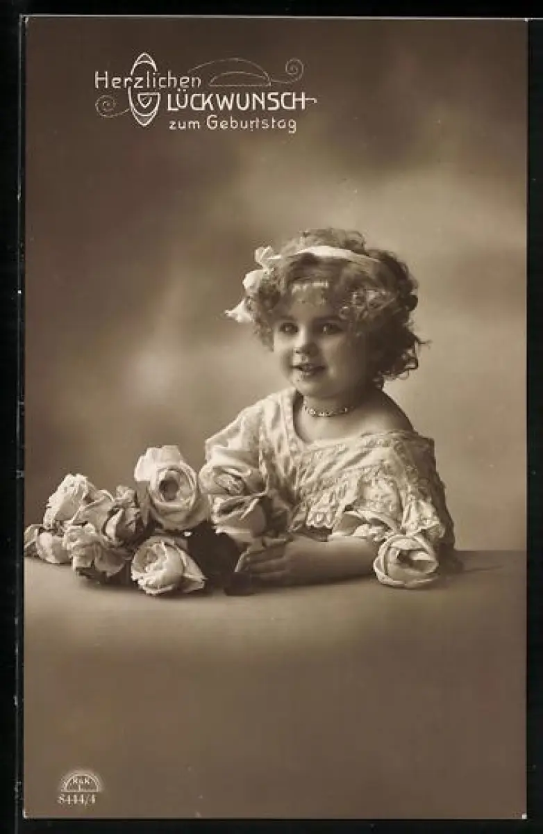 Foto-AK R & K / L Nr. 8444/4: Kleines Mädchen mit Rosenblüten