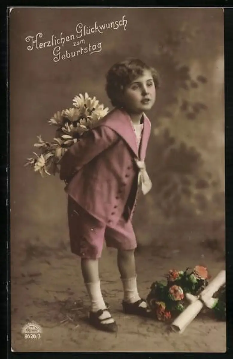 Foto-AK R & K / L Nr. 8626/3: Kleines Mädchen mit verstecktem Blumenstrauss